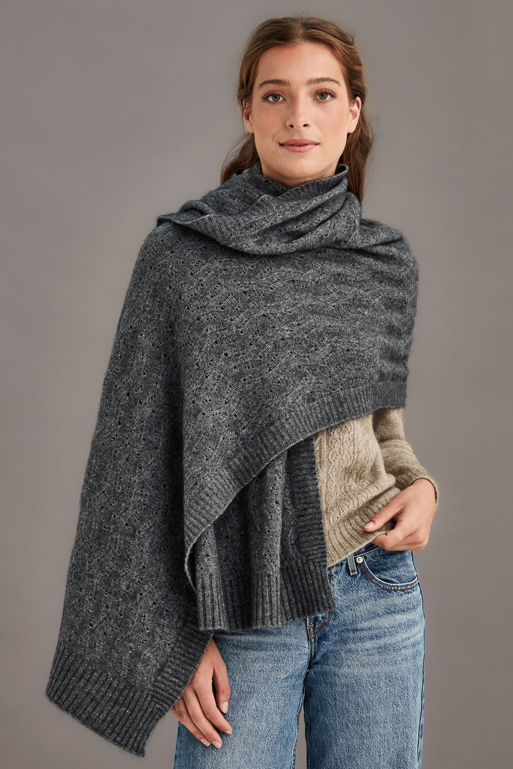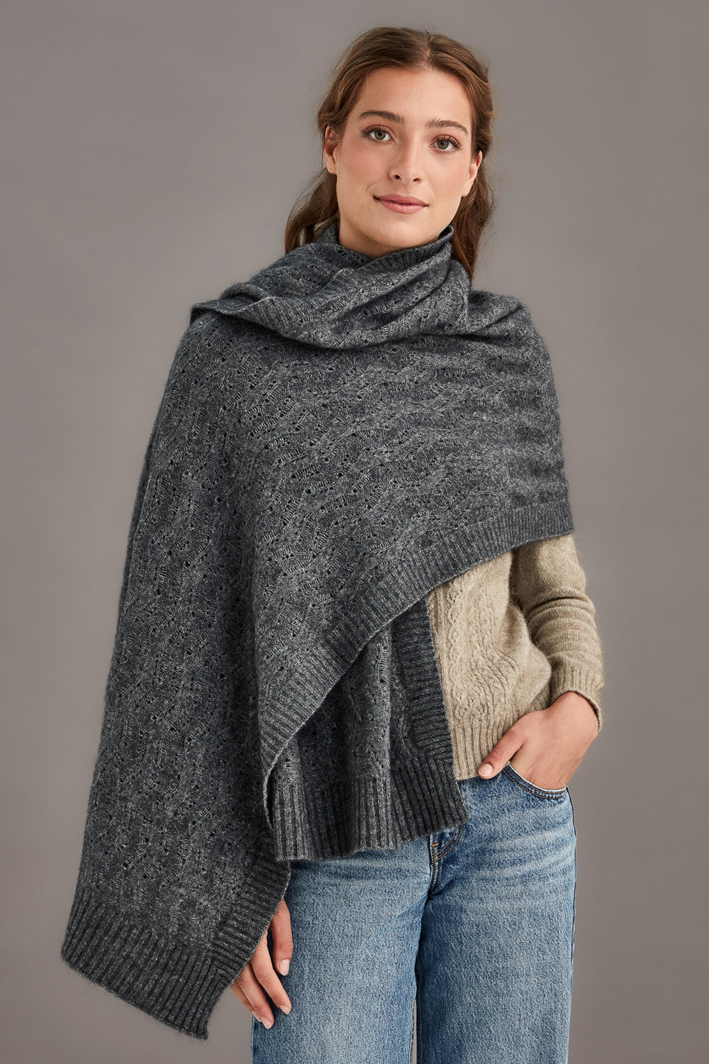 Featuring intricate detail, our Herringbone Lace Shawl is the perfect travel companion. Lightweight and able to be styled in multiple different ways, this piece is a great addition to any wardrobe and is available in classic colourways.