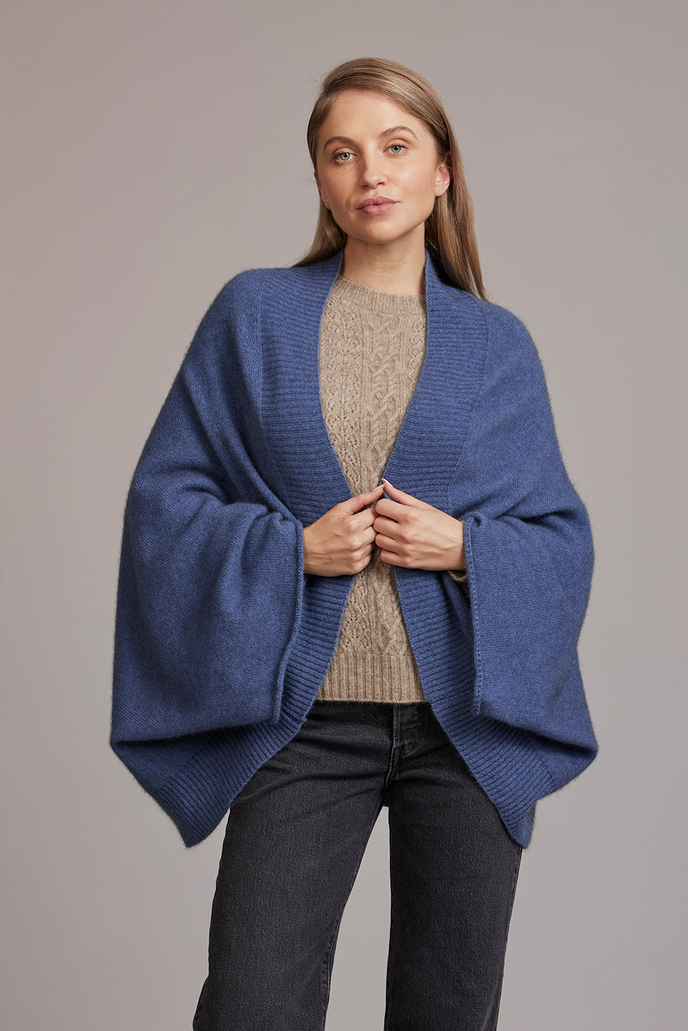 This Possum Merino Shrug Cardigan made by McDonald impresses with its form and function, artfully draping on the body while keeping you exceptionally warm. Natural wool and possum fibres combine with delicate mulberry silk to create a forever knit you will cherish for years to come.